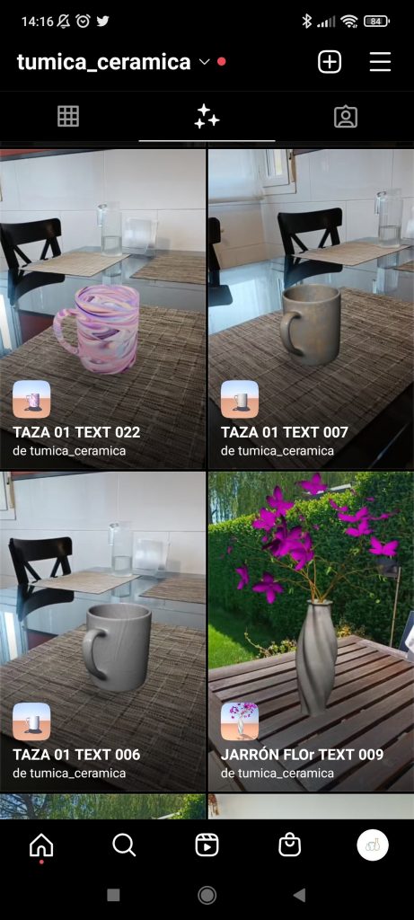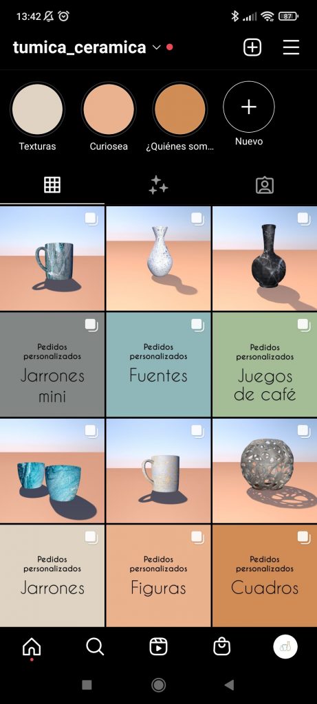 • Estrategia digital: Instagram y filtro de realidad virtual: Se creó un perfil de Instagram como escaparate digital, diseñado para conectar con la comunidad de amantes de la cerámica artesanal. La estrategia incluyó una línea visual coherente y contenido que resalta tanto los productos como el proceso artesanal. Además, desarrollé un filtro de realidad virtual en 3D que permite a los usuarios explorar virtualmente los productos, visualizarlos en distintos entornos y apreciar los detalles de cada pieza de una forma innovadora e interactiva.